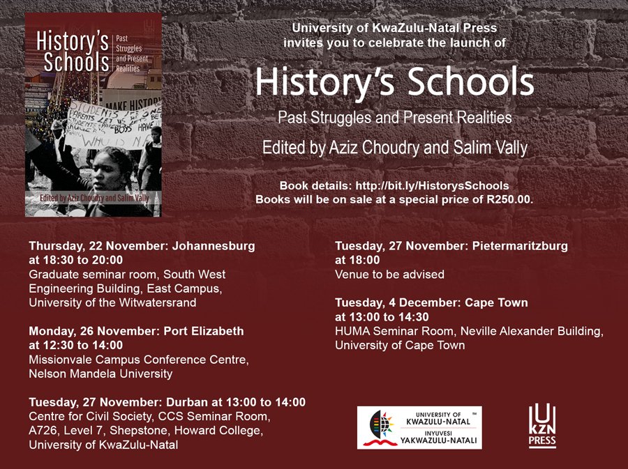 Book Launch History S Schools Past Struggles And Present Realities Co Edited By Aziz Choudry Salim Vally University Of The Witwatersrand Channels Mcgill University