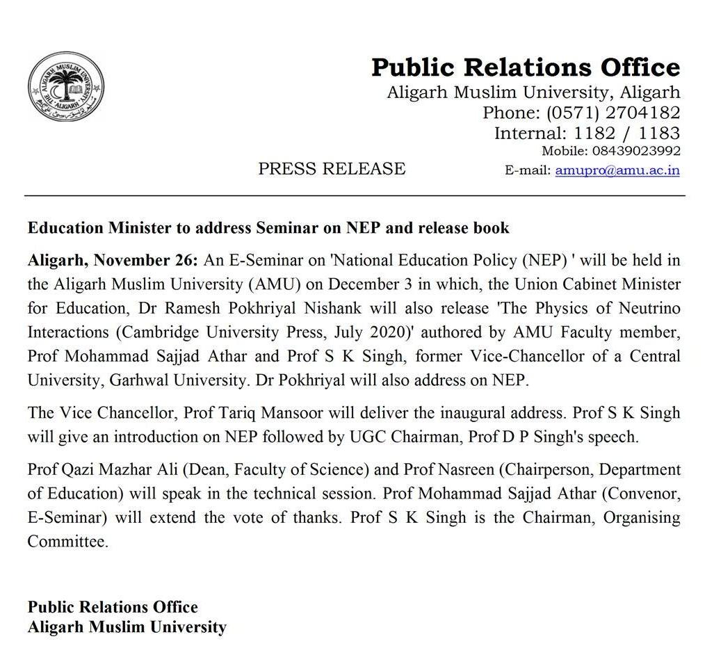 Aligarh Muslim University On Twitter Hon Ble Education Minister To Address An E Seminar National Education Policy Amu Pib India Pibhrd Dg Pib Drrpnishank Sanjaydhotremp Pmoindia Rashtrapatibhvn Proftariqmanso1 Awasthiawanishk