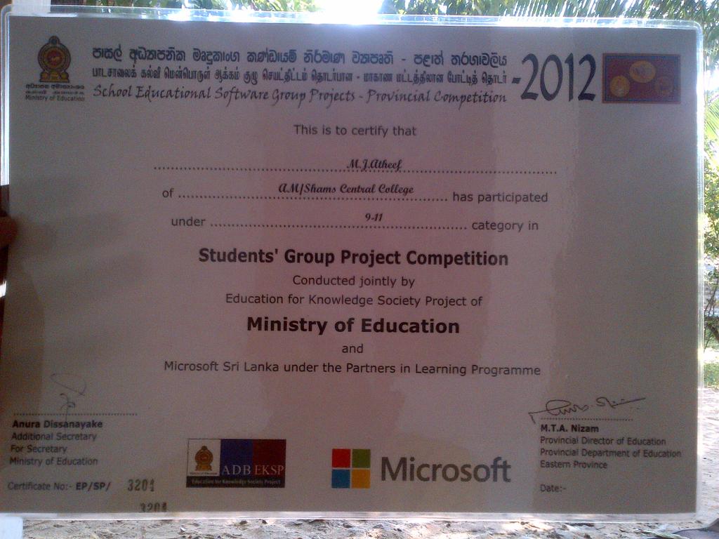 M J Mohamed Atheef On Twitter Microsoft I Ve A Certificate Of Software Schools Competition Http T Co Dq7sprbfly